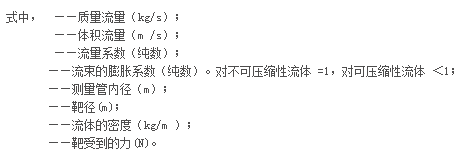 靶板受力经力转换器转变成电流信号(4~20)mA或气压信号(20~100kPa)输出,输出信号与流量的关系可根据上式确定。